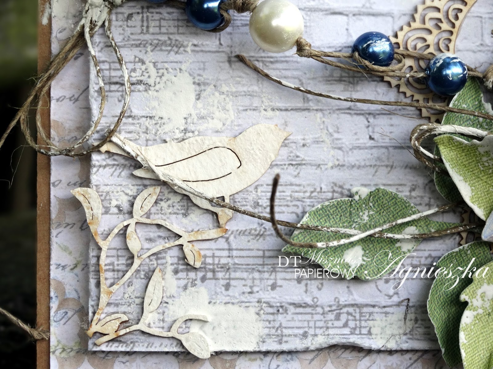 Troszkę "nabałaganiłam" na niej, bo i poszarpane brzegi, pochlapane tło,